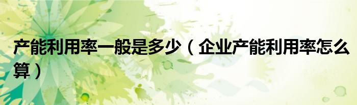 关于产能利用率一般是多少,企业产能利用率怎么算这个很多人还不知道,今天菲菲来为大家解答以上的问题,现在让我们一起来看看吧!