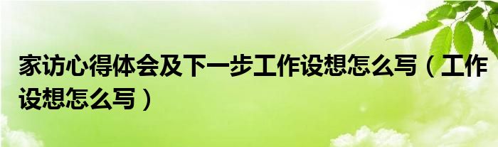 家访心得体会及下一步工作设想怎么写(工作设想怎么写)