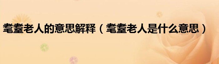 关于耄耋老人的意思解释,耄耋老人是什么意思这个很多人还不知道,今天菲菲来为大家解答以上的问题,现在让我们一起来看看吧!