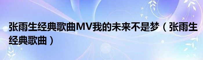 关于张雨生经典歌曲MV我的未来不是梦,张雨生经典歌曲这个很多人还不知道,今天菲菲来为大家解答以上的问题,现在让我们一起来看看吧!