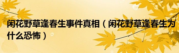 闲花野草逢春生事件真相,闲花野草逢春生为什么恐怖这个很多人还不知道,小飞来为大家解答以上的问题。现在让我们一起来看看吧!