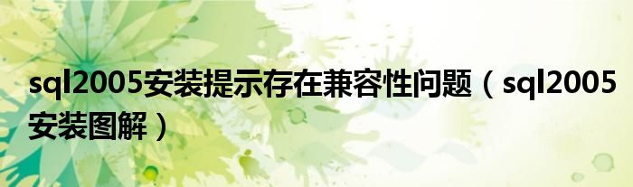 大家好,小飞来为大家解答以上问题,sql2005安装提示存在兼容性问题,sql2005安装图解很多人还不知道,现在让我们一起来看看吧!