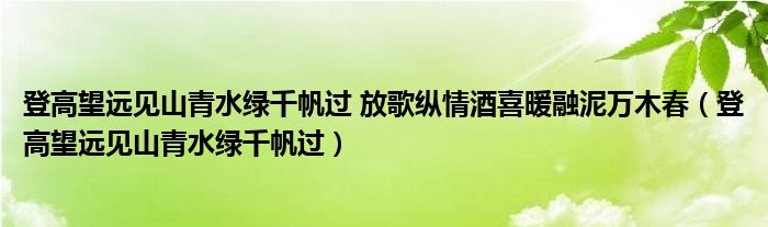 登高望远见山青水绿千帆过 放歌纵情酒喜暖融泥万木春,登高望远见山青水绿千帆过这个很多人还不知道,小飞来为大家解答以上的问题。现在让我们一起来看看吧!
