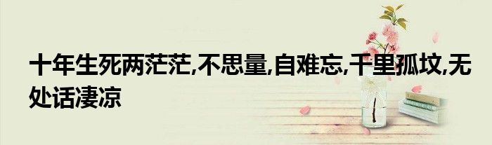 关于十年生死两茫茫,不思量,自难忘,千里孤坟,无处话凄凉这个很多人还不知道,今天菲菲来为大家解答以上的问题,现在让我们一起来看看吧!