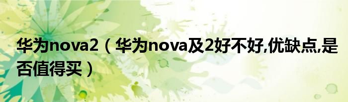 1,华为nova 2好不好,优缺点,是否值得买:华为nova2非常不错的,高颜值,爱自拍,拍出更加完美的照片,可以到华为体验店体验一下,也可以到华为官网查询产品参数信息:1.外观:HUAWEI nova 2 是5.0英寸,超薄一体化金属机身,FHD柔光护眼屏,背部指纹识别模块完全做平,增强机身一体性 , 更有曜石黑,流光金,玫瑰金,极光蓝,草木绿时尚色彩。2.性能:操作系统EMUI 5.1,华为麒麟659芯片,8核64位处理器,4G RAM+128G大内存,超大存储,畅快下载,更有HIFI级音质。3.拍照:后置1200万像素(F1.8光圈)+800万像素(F2.4光圈),自动对焦(反差对焦、相位对焦)前置摄像头是华为首款前置2000万像素摄像头,F2.0光圈,固定焦距,美颜4.0,智能美颜+背景虚化,毫米级识别点,美颜效果更自然。4.电池: 电池容量2950 mAh,支持9V2A安全快充。