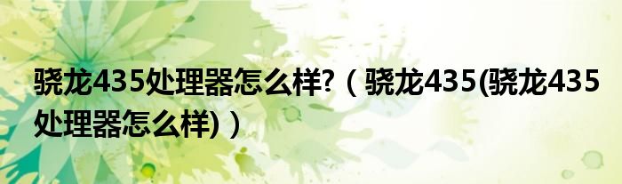 骁龙435处理器怎么样?(骁龙435(骁龙435处理器怎么样))