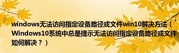 windows无法访问指定设备路径或文件win10解决方法(Windows10系统中总是提示无法访问指定设备路径或文件如何解决?)
