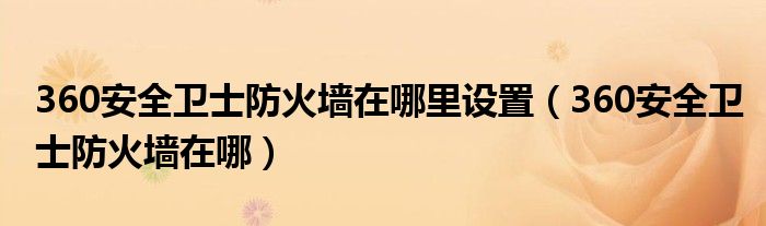 大家好,今天小悦来为大家解答以上问题。360安全卫士防火墙在哪里设置,360安全卫士防火墙在哪很多人还不知道,现在让我们一起来看看吧!