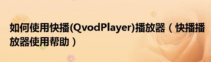 大家好,今天小悦来为大家解答以上问题。如何使用快播(QvodPlayer)播放器,快播播放器使用帮助很多人还不知道,现在让我们一起来看看吧!
