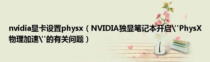 大家好,今天小悦来为大家解答以上问题。nvidia显卡设置physx,NVIDIA独显笔记本开启"PhysX物理加速"的有关问题很多人还不知道,现在让我们一起来看看吧!