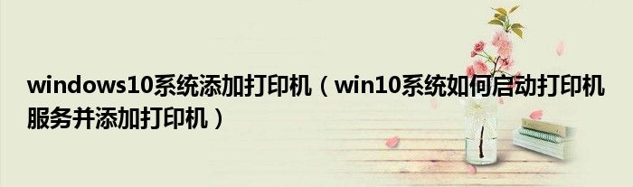 windows10系统添加打印机(win10系统如何启动打印机服务并添加打印机)
