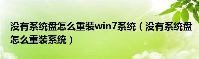 没有系统盘怎么重装win7系统(没有系统盘怎么重装系统)
