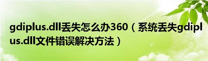 大家好,今天小悦来为大家解答以上问题。gdiplus.dll丢失怎么办360,系统丢失gdiplus.dll文件错误解决方法很多人还不知道,现在让我们一起来看看吧!