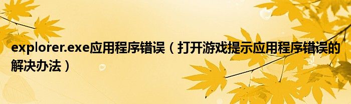 大家好,今天小悦来为大家解答以上问题。explorer.exe应用程序错误,打开游戏提示应用程序错误的解决办法很多人还不知道,现在让我们一起来看看吧!