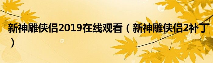 新神雕侠侣2019在线观看,新神雕侠侣2补丁这个很多人还不知道,小飞来为大家解答以上的问题。现在让我们一起来看看吧!
