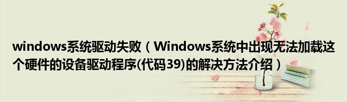 大家好,今天小悦来为大家解答以上问题。windows系统驱动失败,Windows系统中出现无法加载这个硬件的设备驱动程序(代码39)的解决方法介绍很多人还不知道,现在让我们一起来看看吧!