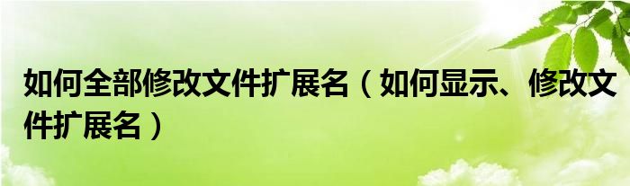 大家好,小太来为大家解答以上问题。如何全部修改文件扩展名,如何显示、修改文件扩展名很多人还不知道,现在让我们一起来看看吧!