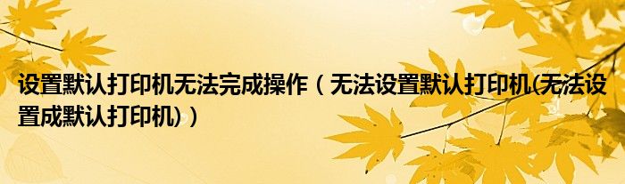 大家好,小常来为大家解答以上问题。设置默认打印机无法完成操作,无法设置默认打印机(无法设置成默认打印机)很多人还不知道,现在让我们一起来看看吧!