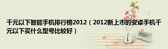 大家好,小常来为大家解答以上问题。千元以下智能手机排行榜2012,2012新上市的安卓手机千元以下买什么型号比较好很多人还不知道,现在让我们一起来看看吧!
