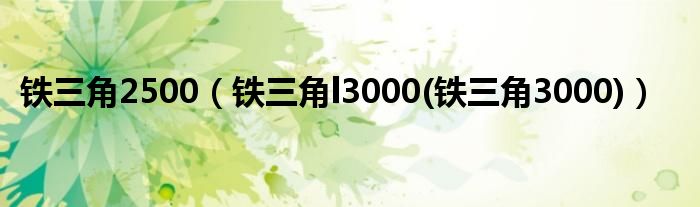 大家好,小常来为大家解答以上问题。铁三角2500,铁三角l3000(铁三角3000)很多人还不知道,现在让我们一起来看看吧!