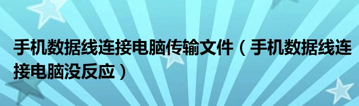 1、手机数据线一般用于数据传输,最直接的作用就是充电。手机数据线是连接手机串口和电脑的数据通讯线,可以在电脑和手机之间传输数据。那么手机数据线连接电脑没反应?的理由是什么?手机数据线连接电脑没反应?呢