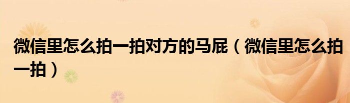 大家好,慧慧来为大家解答以上问题,微信里怎么拍一拍对方的马屁,微信里怎么拍一拍很多人还不知道,现在让我们一起来看看吧!