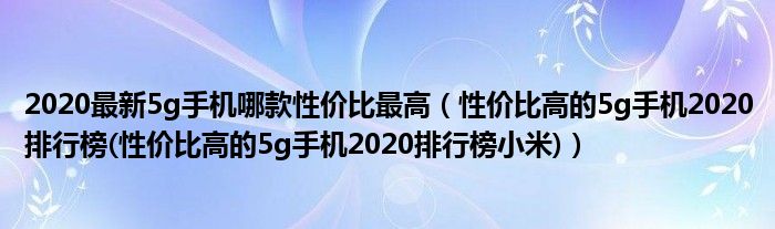 大家好,小常来为大家解答以上问题。2020最新5g手机哪款性价比最高,性价比高的5g手机2020排行榜(性价比高的5g手机2020排行榜小米)很多人还不知道,现在让我们一起来看看吧!