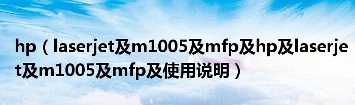 大家好,小常来为大家解答以上问题。hp,laserjet及m1005及mfp及hp及laserjet及m1005及mfp及使用说明很多人还不知道,现在让我们一起来看看吧!
