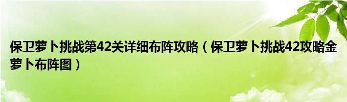 大家好,慧慧来为大家解答以上问题,保卫萝卜挑战第42关详细布阵攻略,保卫萝卜挑战42攻略金萝卜布阵图很多人还不知道,现在让我们一起来看看吧!