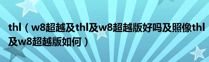 大家好,小常来为大家解答以上问题。thl,w8超越及thl及w8超越版好吗及照像thl及w8超越版如何很多人还不知道,现在让我们一起来看看吧!