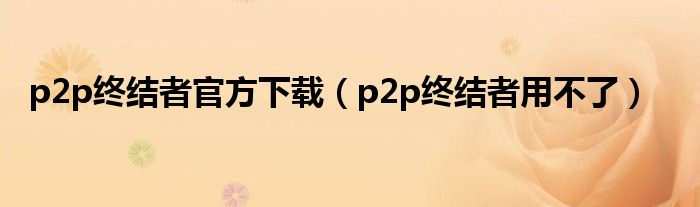 大家好,慧慧来为大家解答以上问题,p2p终结者官方下载,p2p终结者用不了很多人还不知道,现在让我们一起来看看吧!