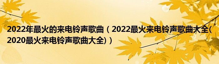 大家好,小常来为大家解答以上问题。2022年最火的来电铃声歌曲,2022最火来电铃声歌曲大全(2020最火来电铃声歌曲大全)很多人还不知道,现在让我们一起来看看吧!