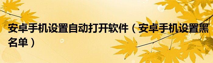 大家好,慧慧来为大家解答以上问题,安卓手机设置自动打开软件,安卓手机设置黑名单很多人还不知道,现在让我们一起来看看吧!