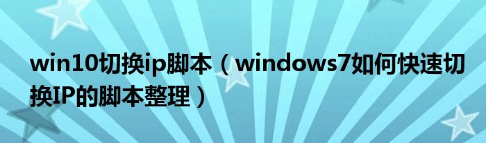 大家好,今天小悦来为大家解答以上问题。win10切换ip脚本,windows7如何快速切换IP的脚本整理很多人还不知道,现在让我们一起来看看吧!