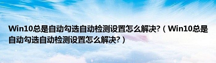 大家好,今天小悦来为大家解答以上问题。Win10总是自动勾选自动检测设置怎么解决?,Win10总是自动勾选自动检测设置怎么解决?很多人还不知道,现在让我们一起来看看吧!
