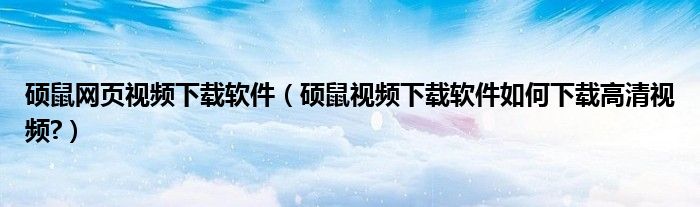 大家好,今天小悦来为大家解答以上问题。硕鼠网页视频下载软件,硕鼠视频下载软件如何下载高清视频?很多人还不知道,现在让我们一起来看看吧!