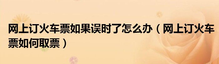 大家好,慧慧来为大家解答以上问题,网上订火车票如果误时了怎么办,网上订火车票如何取票很多人还不知道,现在让我们一起来看看吧!