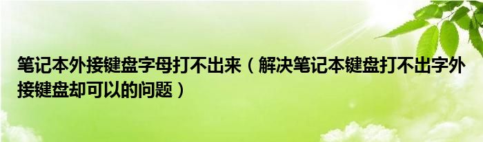 大家好,今天小悦来为大家解答以上问题。笔记本外接键盘字母打不出来,解决笔记本键盘打不出字外接键盘却可以的问题很多人还不知道,现在让我们一起来看看吧!