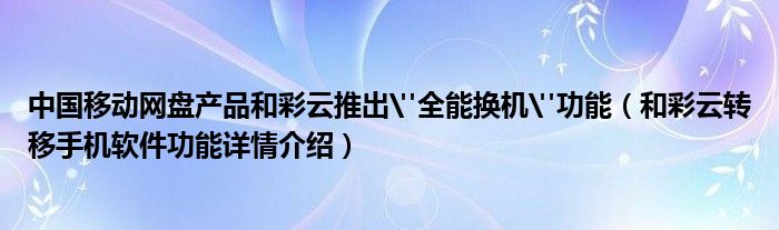 大家好,今天小悦来为大家解答以上问题。中国移动网盘产品和彩云推出"全能换机"功能,和彩云转移手机软件功能详情介绍很多人还不知道,现在让我们一起来看看吧!