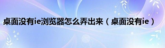 大家好,慧慧来为大家解答以上问题,桌面没有ie浏览器怎么弄出来,桌面没有ie很多人还不知道,现在让我们一起来看看吧!