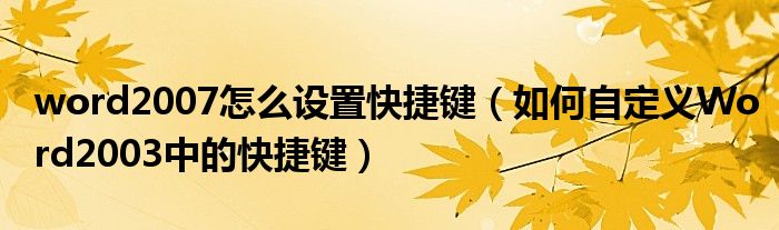 word2007怎么设置快捷键(如何自定义Word2003中的快捷键)