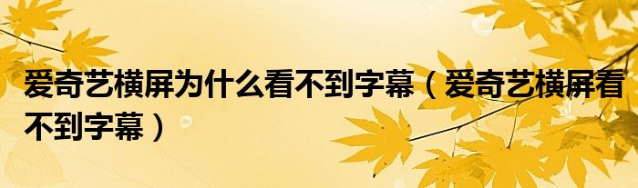 大家好,跳跳为你解答以上问题。爱奇艺横屏为什么看不到字幕,爱奇艺横屏看不到字幕这个问题很多人还不知道,现在让我们一起来看看吧!