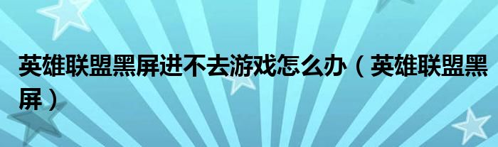 大家好,慧慧来为大家解答以上问题,英雄联盟黑屏进不去游戏怎么办,英雄联盟黑屏很多人还不知道,现在让我们一起来看看吧!