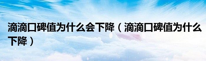 大家好,跳跳为你解答以上问题。滴滴口碑值为什么会下降,滴滴口碑值为什么下降这个问题很多人还不知道,现在让我们一起来看看吧!