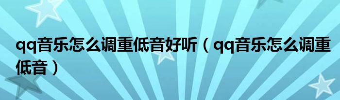 大家好,跳跳为你解答以上问题。qq音乐怎么调重低音好听,qq音乐怎么调重低音这个问题很多人还不知道,现在让我们一起来看看吧!