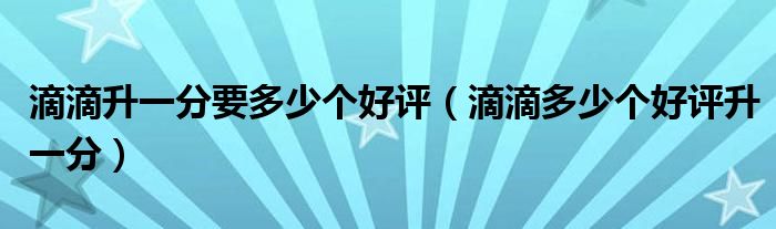 大家好,跳跳为你解答以上问题。滴滴升一分要多少个好评,滴滴多少个好评升一分这个问题很多人还不知道,现在让我们一起来看看吧!