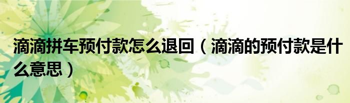 大家好,跳跳为你解答以上问题。滴滴拼车预付款怎么退回,滴滴的预付款是什么意思这个问题很多人还不知道,现在让我们一起来看看吧!