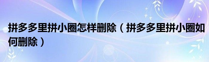 大家好,跳跳为你解答以上问题。拼多多里拼小圈怎样删除,拼多多里拼小圈如何删除这个问题很多人还不知道,现在让我们一起来看看吧!