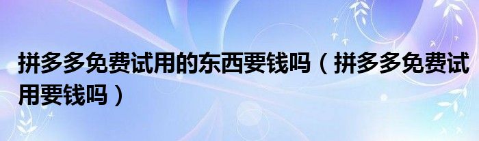 大家好,跳跳为你解答以上问题。拼多多免费试用的东西要钱吗,拼多多免费试用要钱吗这个问题很多人还不知道,现在让我们一起来看看吧!
