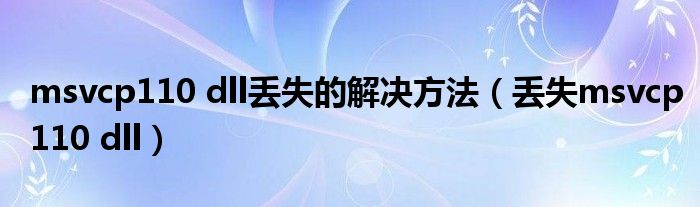 大家好,慧慧来为大家解答以上问题,msvcp110 dll丢失的解决方法,丢失msvcp110 dll很多人还不知道,现在让我们一起来看看吧!